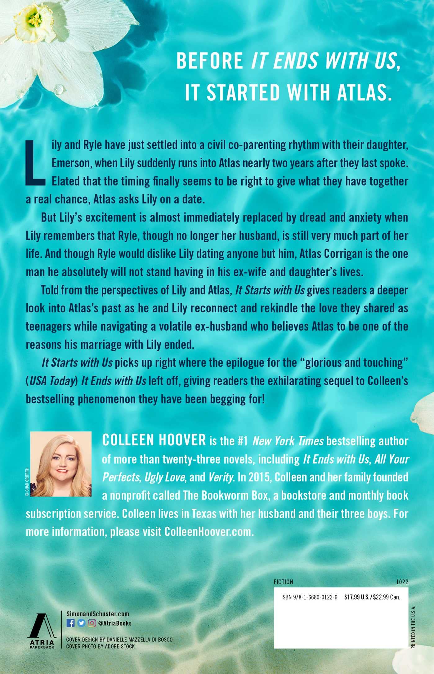 Switching between the perspectives of Lily and Atlas, It Starts with Us picks up right where the epilogue for the “gripping, pulse-pounding” (Sarah Pekkanen, author of Perfect Neighbors) bestselling phenomenon It Ends with Us left off. Revealing more about Atlas’s past and following Lily as she embraces a second chance at true love while navigating a jealous ex-husband, it proves that “no one delivers an emotional read like Colleen Hoover” (Anna Todd, New York Times bestselling author).