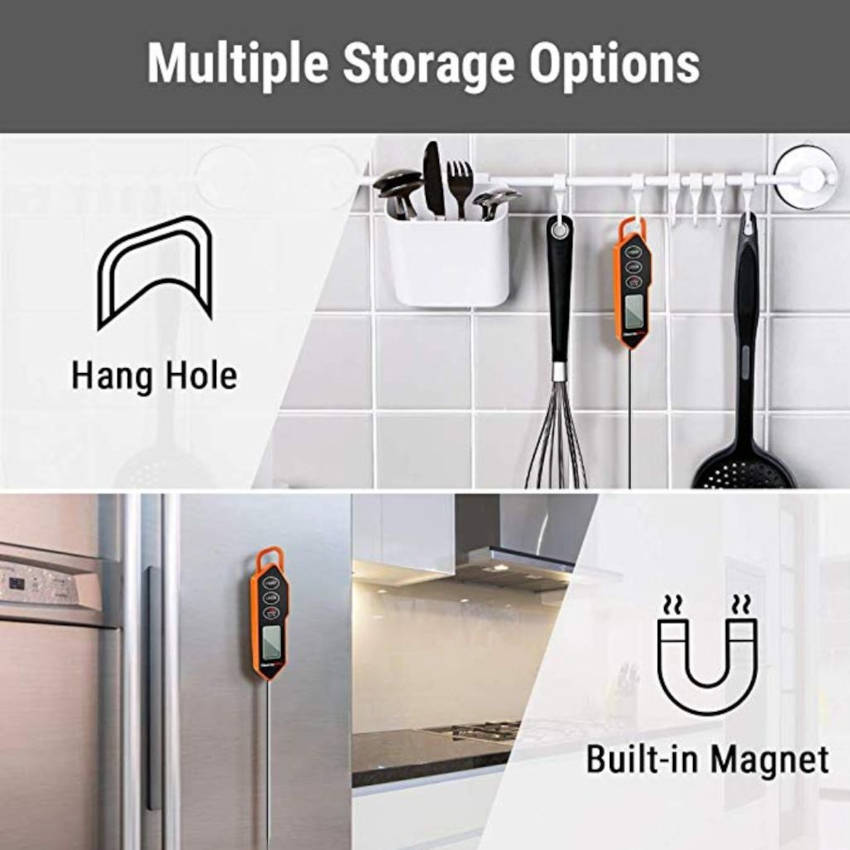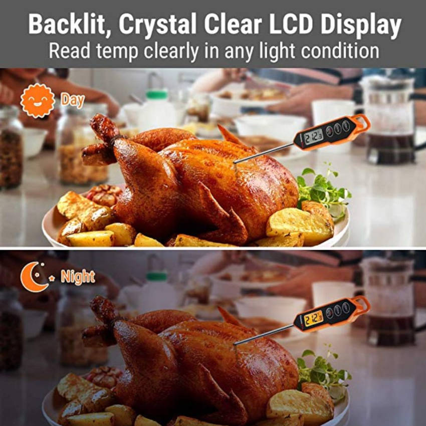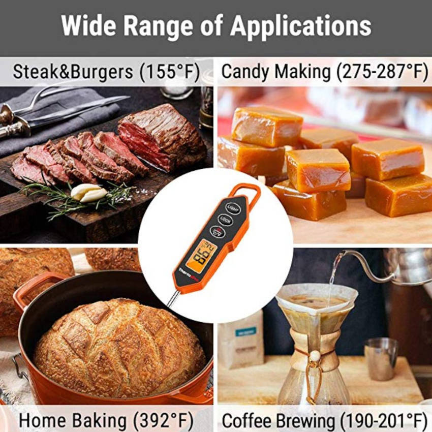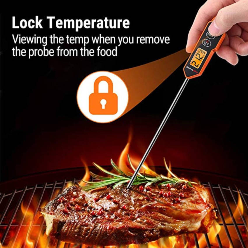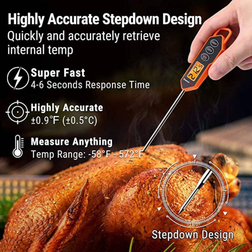 ThermoPro TP-01H digital meat thermometer is an easy and effective cooking tool to get the most accurate temp in 4-6 seconds. Super long 5.3″ food grade stainless steel probe with Step-down Tip ensures the most accurate readings possible(±0.9°F), while also keeping your hands away from the heat when cooking at the grill or in the oven. By using the food thermometer, you can ensure the perfect temp every time you’re grilling or cooking and make your meal taste like it was prepared by a professional!